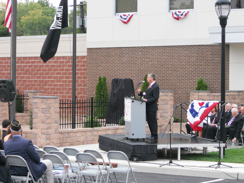 New Jersey Congressman Robert Andrews addresses the crowd at the Cherry Hill 9/11 memorial.